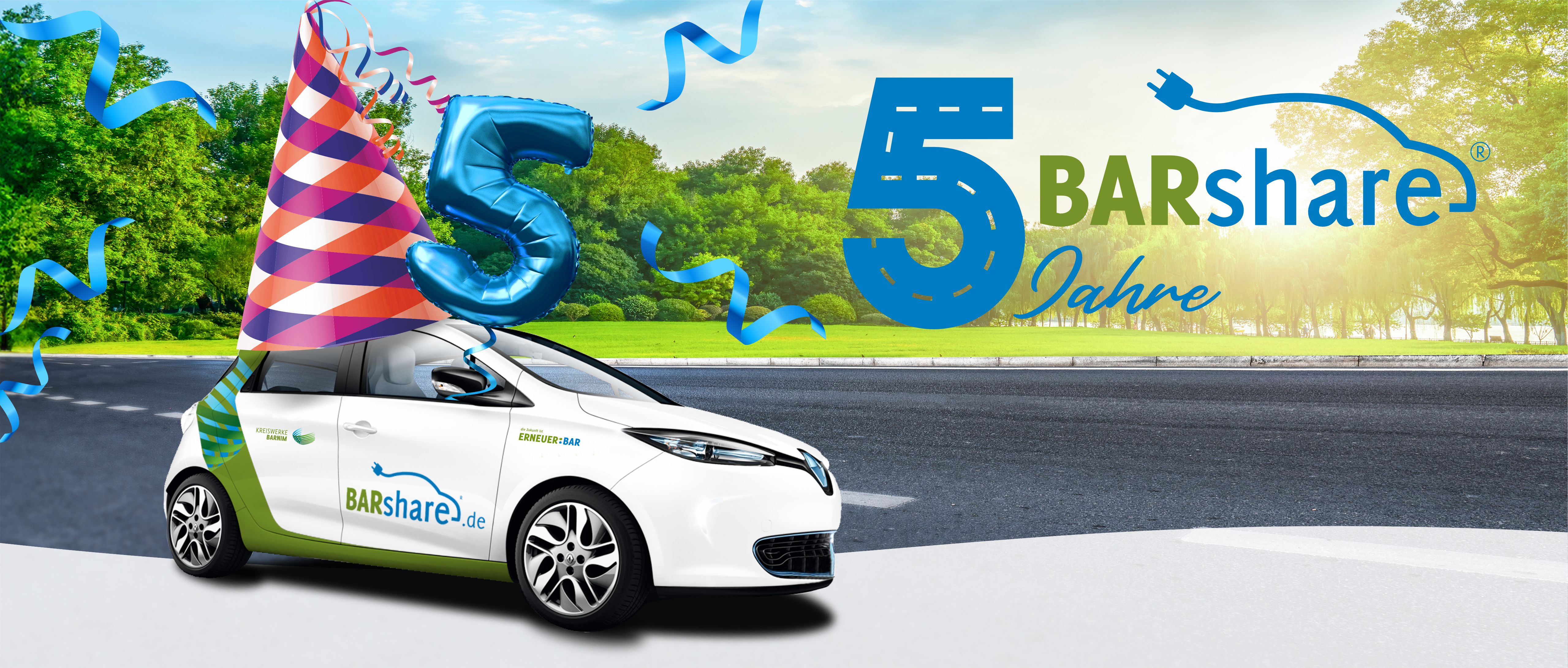 Anlässlich des 5. Geburtstag startet BARshare über die BARshare App die Aktion „Happy5“ bei der Nutzer*innen neue Kunden werben können. Sowohl der werbenden, als auch der neu angemeldete Person winkt jeweils ein Guthaben in Höhe von 5 Euro für die Nutzung von BARshare, sobald die erste Fahrt mit BARshare unternommen wurde.