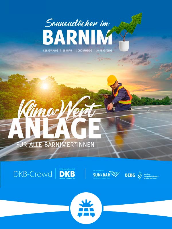 Die Kreiswerke bieten Bürger*innen finanzielle Beteiligungsmöglichkeiten an ihren Energiewendeprojekten: Über die DKB-Crowd werden Energie-Erzeugungsanlagen aller Größenordnungen als Anlagemöglichkeit zur Verfügung gestellt. Damit unterstützen Barnimer*innen nicht nur die Energiewende, sondern investieren auch in Anlagen direkt vor Ort und profitieren privat von einer sinnvollen Geldanlage.